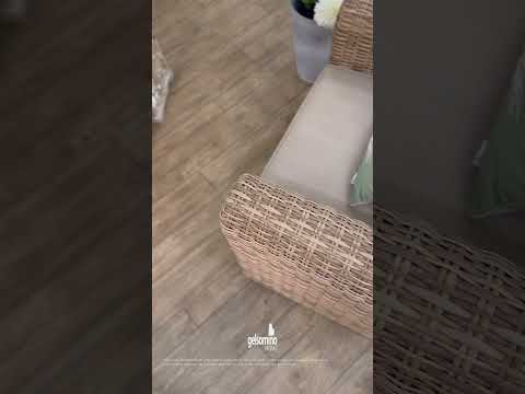 Realizzato con materiali di qualità, come la resina sintetica intrecciata e il telaio in alluminio trattato, garantisce robustezza e resistenza agli agenti atmosferici. I cuscini rimovibili sono pratici da pulire e rivestiti con un tessuto idrorepellente, ideale per l'uso esterno.