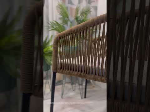 La sedia da esterni rivestita in corda intrecciata Cordal è progettata per resistere agli agenti atmosferici e per durare nel tempo. Lo schienale, la seduta e i braccioli sono rivestiti da una treccia in textilene. Il cuscino in poliestere, interamente sfoderabile e con la sua imbottitura in gommapiuma, rende la seduta molto comoda. La struttura è in acciaio epossidico.